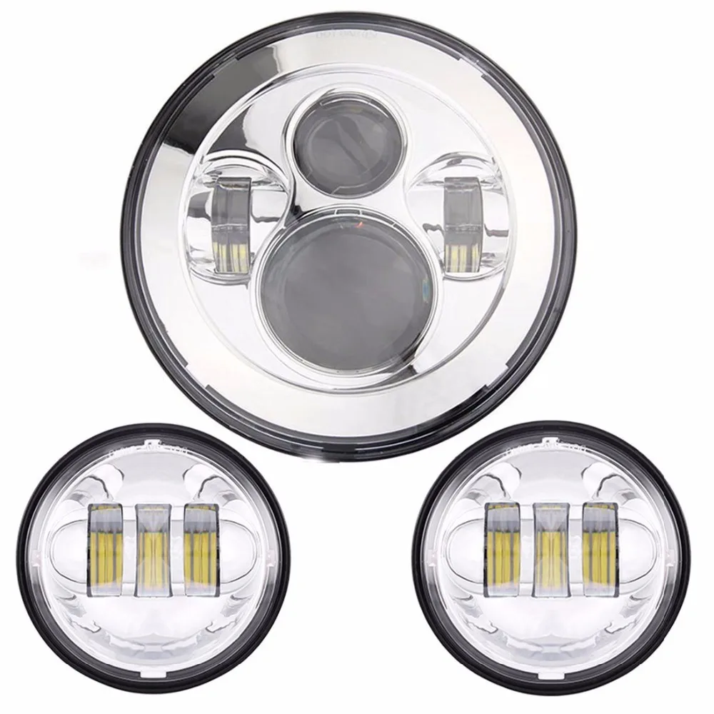 Best Quality 7" Chrome Harley moto Led Headlight Auxiliary Lamp Led Light Bulb + 2Pcs 4.5 inch 30W led motorycle