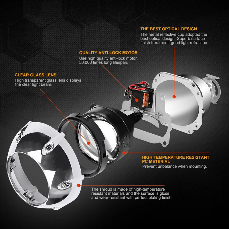 2.5 inch Bi Xenon HID Projector Lens with Silver Shrouds for H4 H7 Motorcycle Styling Headlight Pro